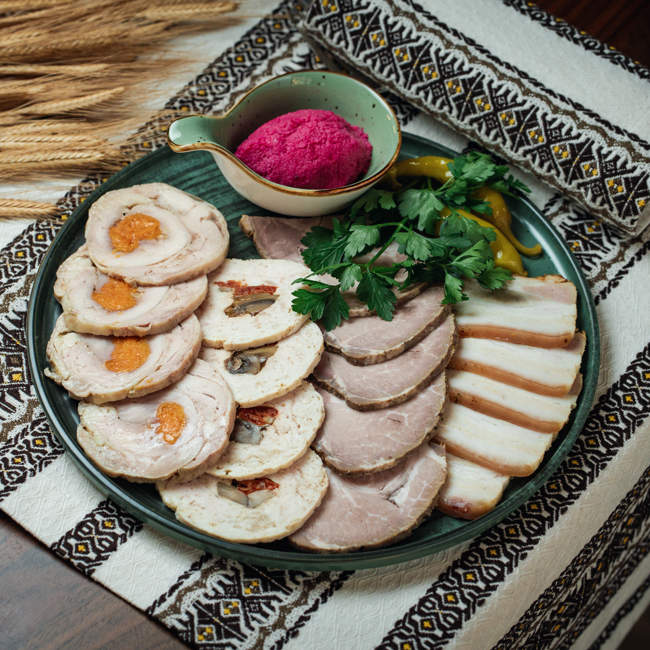 Cremiger Borschtsch und Rustikale Fleischplatte – Pampushky oder ukrainische Pfannkuchen mit Kaviar und Medovik als Nachtisch – einfach unschlagbar!